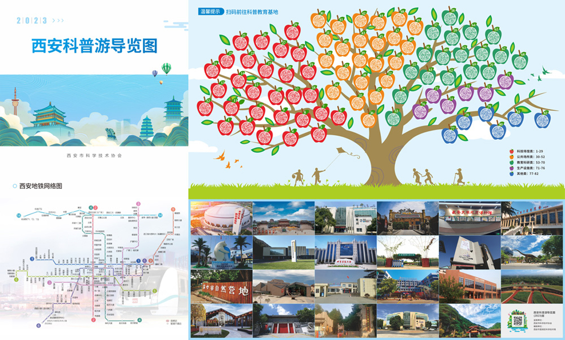 《西安科普游导览图》进一步整合了全市科普教育基地资源,为探索设计各类“西安科普游”品牌活动,加强各基地之间的互动、联动提供了有效的平台,为展示我市“硬科技” 实力和“创新名城”形象打造一张闪亮的城市科普名片。