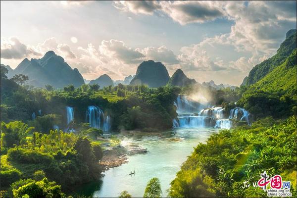 中越边境上的跨国瀑布 时而澎湃 时而阴柔