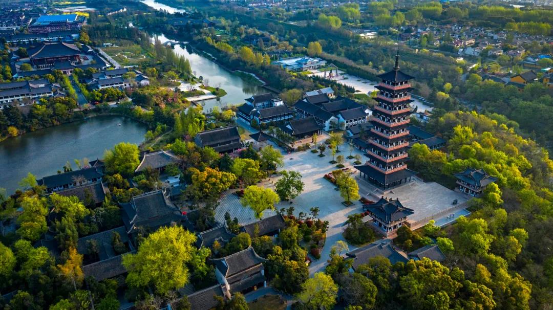 登上栖灵塔塔顶可俯瞰大明寺,远眺瘦西湖与扬州城风景。