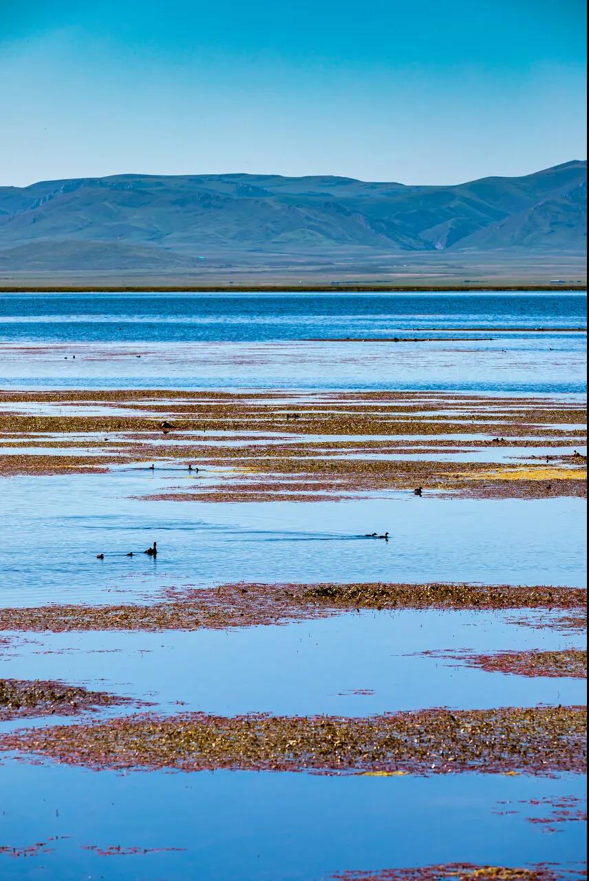 因为这里水草丰茂,湖边草滩上有各种各样的珍稀鸟类被吸引而来。