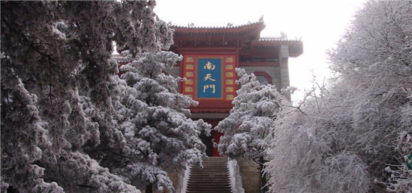 南天门在南峰东侧。自东峰南坡下,经二仙龛、紫气台,沿崎岖小径攀援即可抵达。为登临朝元洞、长空栈道、贺老石室、全真崖的必由之道。