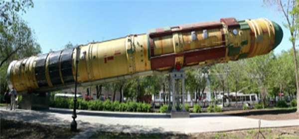 苏联时期研制装备的SS-18“撒旦”洲际弹道导弹,曾是世界上最大的液体推进剂导弹。该导弹采取两级可储液体推进剂火箭发动机,采用惯性制导系统和导弹发射井冷发射。“撒旦”先后发展了5种型别,其中2型和4型为分导多弹头。2型(P-36M)弹长34米,弹径3米,起飞质量217吨,射程1.5万公里。4型(P-36MY)弹长36.5米,弹径3米,起飞质量211.1吨,射程1.1万公里。