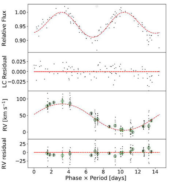 视向速度曲线和光变曲线联合限制双星系统LTD064402+245919的物理参数。
