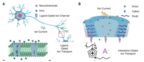 同时,利用聚电解质对不同对离子的识别能力,研究人员实现了神经化学信号与电信号之间转导的模拟。该成果在化学突触的模拟研究领域中迈出了关键的一步。