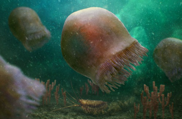 这种新物种属于一种名为Burgessomedusa phasmiformis的自由游动的掠食性水母,其身体呈碟形或钟形,长达20厘米。它大约有90根短触手,可捕捉体型巨大的猎物,可能是当时海洋中的顶级掠食者之一。