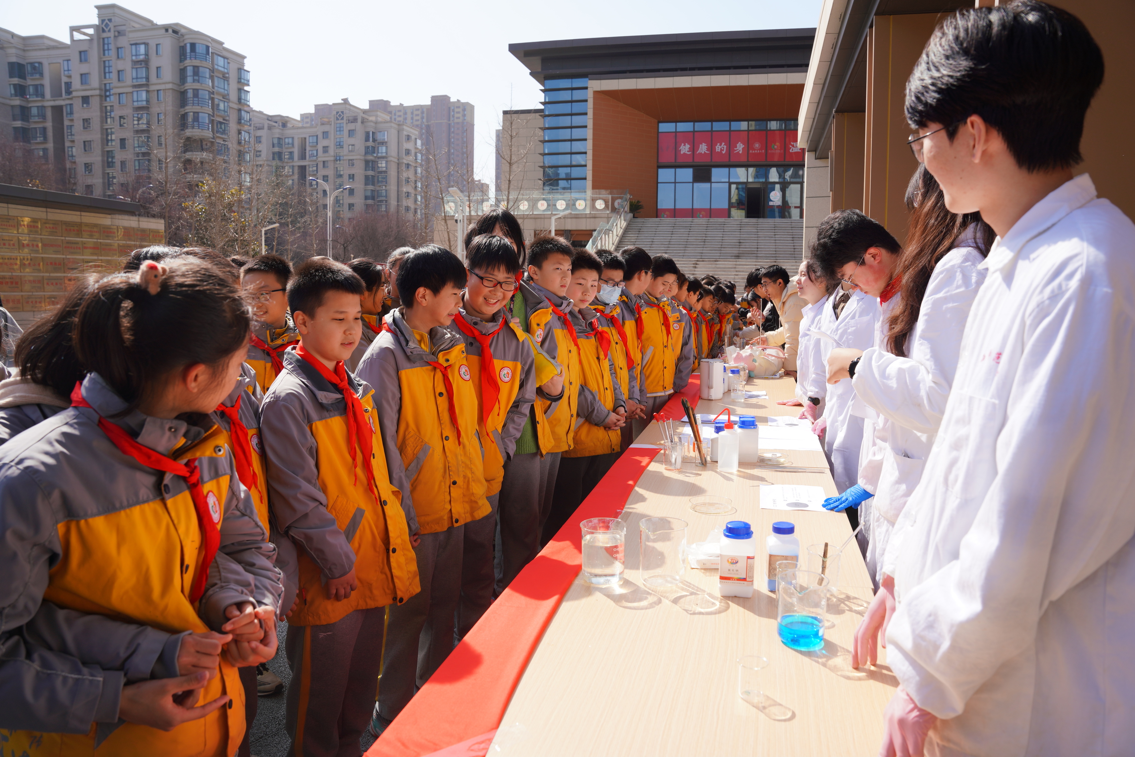 科学,宛如那永不落幕的璀璨星河,闪耀着智慧与奥秘的光芒。而探索与创新,便是那在这星河中破浪前行的方舟,引领我们驶向未知的彼岸。陕师大物理学与信息技术学院的志愿团队以及化学实验团队,犹如星河中的使者,为孩子们带来了一场场趣味横生的科学实验。