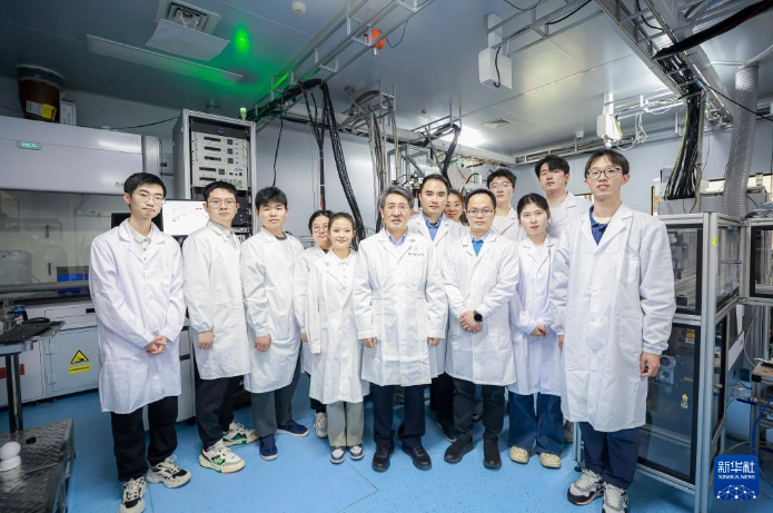 图为薛其坤与研发团队在实验室进行高温超导研究(资料照片)。