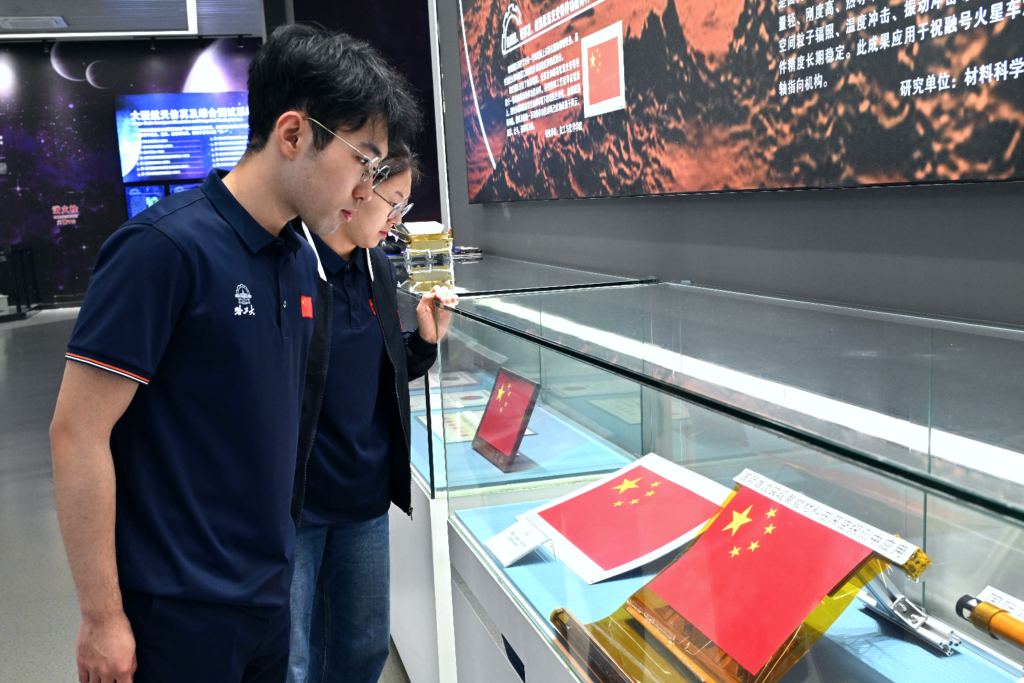 新华社哈尔滨4月24日电(记者杨思琪、姜思妮)在深空极端环境下,特种材料如何保持性能、防止颜色脱落?第十个“中国航天日”之际,记者实地探访哈尔滨工业大学航天馆,在一面特殊的五星红旗上找到答案。 在哈工大航天馆探火展区,“天问一号”探测器模型吸引不少参观者围观。2021年5月,“天问一号”探测器在火星的乌托邦平原成功着陆,我国成为第二个登陆火星的国家。 在哈尔滨工业大学航天馆,学生参观“天问一号”探测器上的国旗演示样件。新华社记者 姜思妮 摄 在“天问一号”的一张深空“自拍”照上,探测器侧面的一面五星红旗格外耀眼。这面国旗上使用了一款“聪明”的航天涂层材料,不仅可以抵挡强烈的辐射,还能经受住极端高温和低温的挑战。 这种涂层材料的“作者”是哈尔滨工业大学化工与化学学院教授吴晓宏团队。这面国旗是为此次任务专门设计与研制,尺寸约为39厘米×26厘米,稍小于一张A3纸,重量仅为144克。 吴晓宏介绍,为尽可能将国旗减轻重量、保持性能,团队进行了一系列科研攻关,开发出一种特种功能材料。作为涂层材料,它集抗辐照、低挥发和耐高低温交变等性能于一体。历经辐照、高低温交变、低温存储等多轮次“考核”,它才得以应用在探测器上。 值得一提的是,2023年哈工大的本科生录取通知书里,有一枚造型为“HIT”(哈工大英文缩写)的书签,正是采用了这种超级涂层材料,为学生送上“宇宙级浪漫”。 与此同时,这面国旗的展开方式也很特别,其设计灵感源自中国古代卷轴画,由哈工大研究团队突破多项技术瓶颈,创新应用智能材料实现可控动态展开,向世界展现一抹亮眼的“中国红”。这项技术具有可靠性高、结构简单、重量轻等优点,如今已经成功用于卫星柔性太阳电池阵的可控展开,大幅降低商业航天器的成本。 哈尔滨工业大学航天馆里,很多小朋友前来参观。新华社记者 姜思妮 摄 一面红旗是一代代航天人不懈努力的缩影。多年来,哈工大科研团队在航天领域攻克了多项关键技术难题,为国家重大工程提供了重要支撑。 “让科技赋能航天梦,是我们不变的追求。”哈工大计算学部2021级本科生尹博即将攻读硕士研究生,从事低轨卫星、卫星物联网等方向的研究工作。他说,作为一名新时代的航天学子,自己将接续奋斗、勇攀高峰,为探索浩瀚星海、圆梦航天事业贡献青春力量。