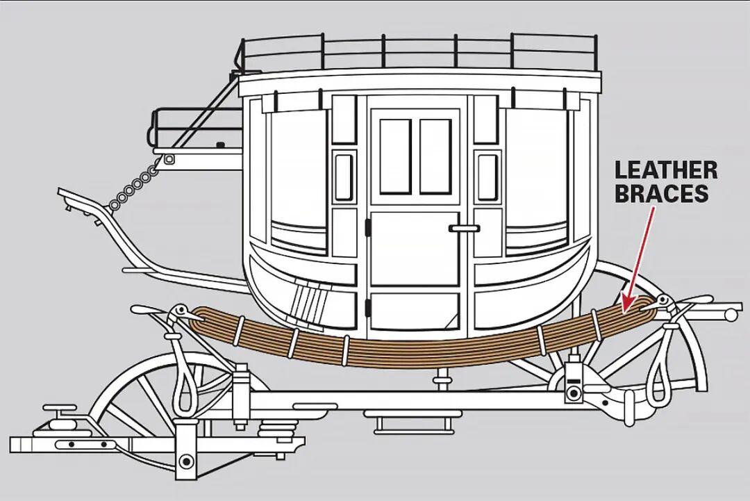 问题的根源在于,马车一开始几乎没有像样的减震系统。中世纪时,车厢直接钉在车轴上,轮子怎么跳,车厢就怎么跳。后来人们把车厢挂在铁链或皮带上,让它“飘”在车架上方。这虽然削弱了冲击,却制造了新麻烦——乘客仿佛坐在一个不停摇晃的吊床里,依然谈不上舒适。