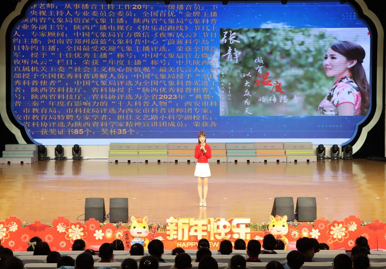 3月23日下午,西安市科普讲师团2026年世界气象日“乐享气象 守护未来”气象科普嘉年华,气象主播带您“探索风云变幻的气象世界”——“科普使者”进校园特色科普活动,在西安经开第一学校成功举办。活动由全国百优“金牌主播”,“全国优秀科普讲解人员”,“全国优秀科普使者”,“全国气象科普先进工作者”,“陕西优秀科普使者”,2023年“典赞·科普三秦”年度有影响力的“十大科普人物”,西安市科普讲师团专家讲师,陕西省气象局资深气象主播张静老师担任科普主讲。