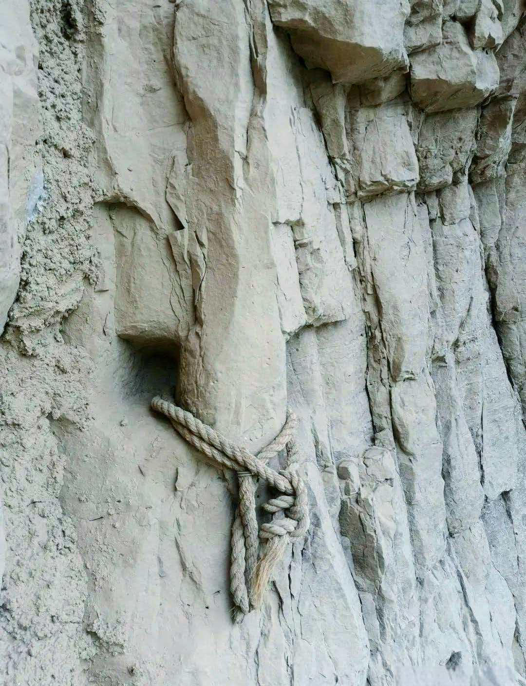 绳槽:山崖凸出的栈道拐弯处,内侧岩壁上都有数道深浅不一的绳磨槽痕,最深的可达30厘米左右,这是因为在转弯时,纤夫尤其需要用力,绳磨所致。 是千年以来,无数根纤绳在坚硬岩石上“书写”出的最深刻痕迹