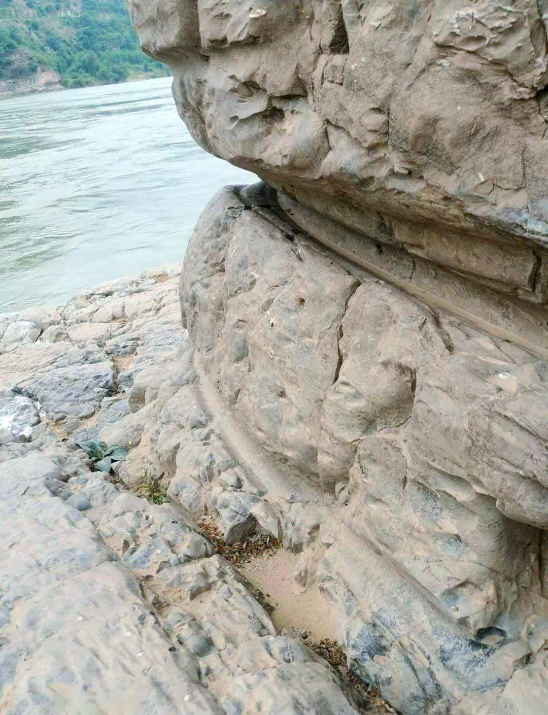 牛鼻形壁孔:在石壁上对凿相通,外留“鼻梁”,形似牛鼻。多凿于路面以上约1米处,供纤夫挽船时穿绳借力,是纤夫与激流对抗的受力点。