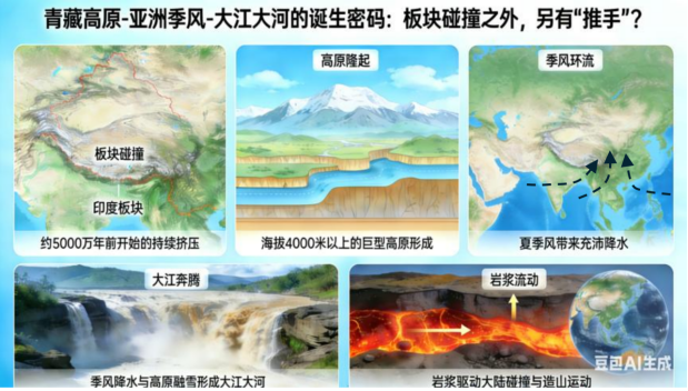 青藏高原的隆起重塑了亚洲气候与水系,而这一切的源头动力,正是岩浆流体的正交碰撞。