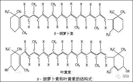 胡萝卜素和叶黄素的结构式 来源:博物