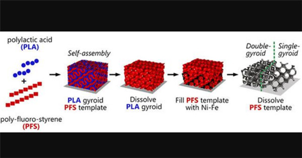 陀螺仪吸引了很多人的兴趣,因为尽管它们很复杂,但它们可以从精心配制的聚合物组合中自组装,这些聚合物可以用作三维模具或模板来形成独立的纳米结构。当支柱连接成螺旋线时,陀螺仪有一种“利手”或手性,其形状使磁陀螺仪成为测试从曲率中出现新磁性预测的理想系统。对陀螺仪光学性质的测量,甚至表明陀螺仪可以具有拓扑特性,这与手征效应一起是目前开发新型自旋电子器件的热门课题。