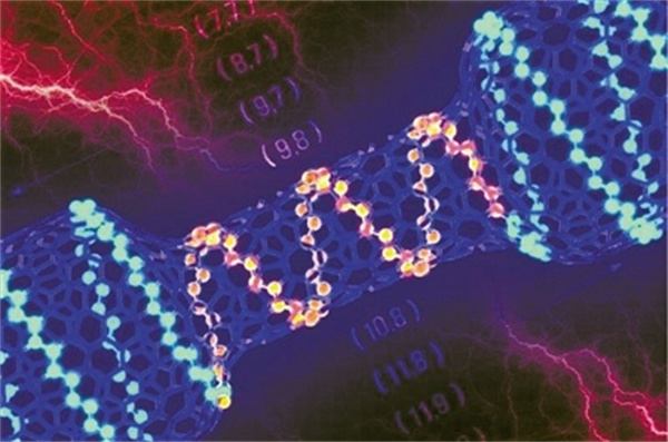 研究人员表示,他们或许可以借助碳纳米管制造出节能的纳米晶体管,以超越由硅制成的微处理器,但控制单个碳纳米管的“手性”(决定了碳原子的几何结构和电子结构)仍然是一个巨大的挑战。在最新研究中,他们通过加热和机械应变改变了金属纳米管片段的局部“手性”,设计并制造了碳纳米管分子内晶体管。