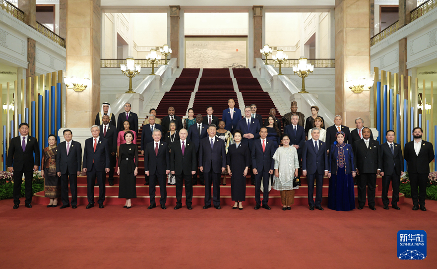 出席高峰论坛的外国国家元首、政府首脑、国际组织负责人等国际贵宾及配偶陆续抵达人民大会堂。礼兵列队致敬。150多面共建“一带一路”国家国旗和联合国旗,整齐分列红毯两侧,恢宏壮观。