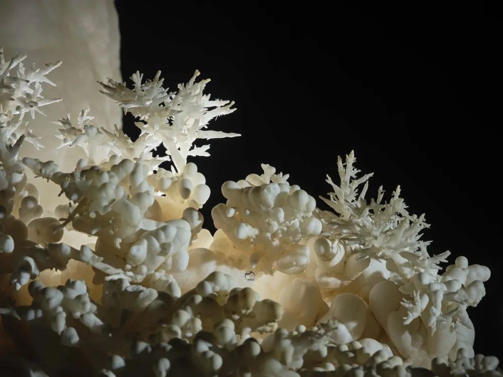 “我探洞探了很多年,洞内产生的沉积物质地非常纯净就像白玉一样,这在国内其他地方的洞穴是没有的”赵揭宇说,“此次科研活动中发现洞里有一个数万平方米的洞厅,上千根纯白石钟乳如冰晶森林般亭亭玉立于其中,雪白质感源于水中碳酸钙纯度极高且无杂质干扰。洞里的沉积物、规模、品质、种类完全改变了我们的认知”