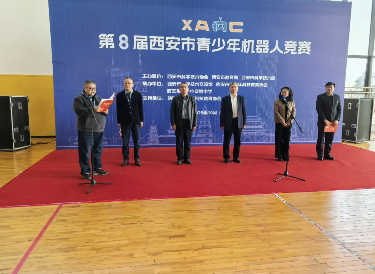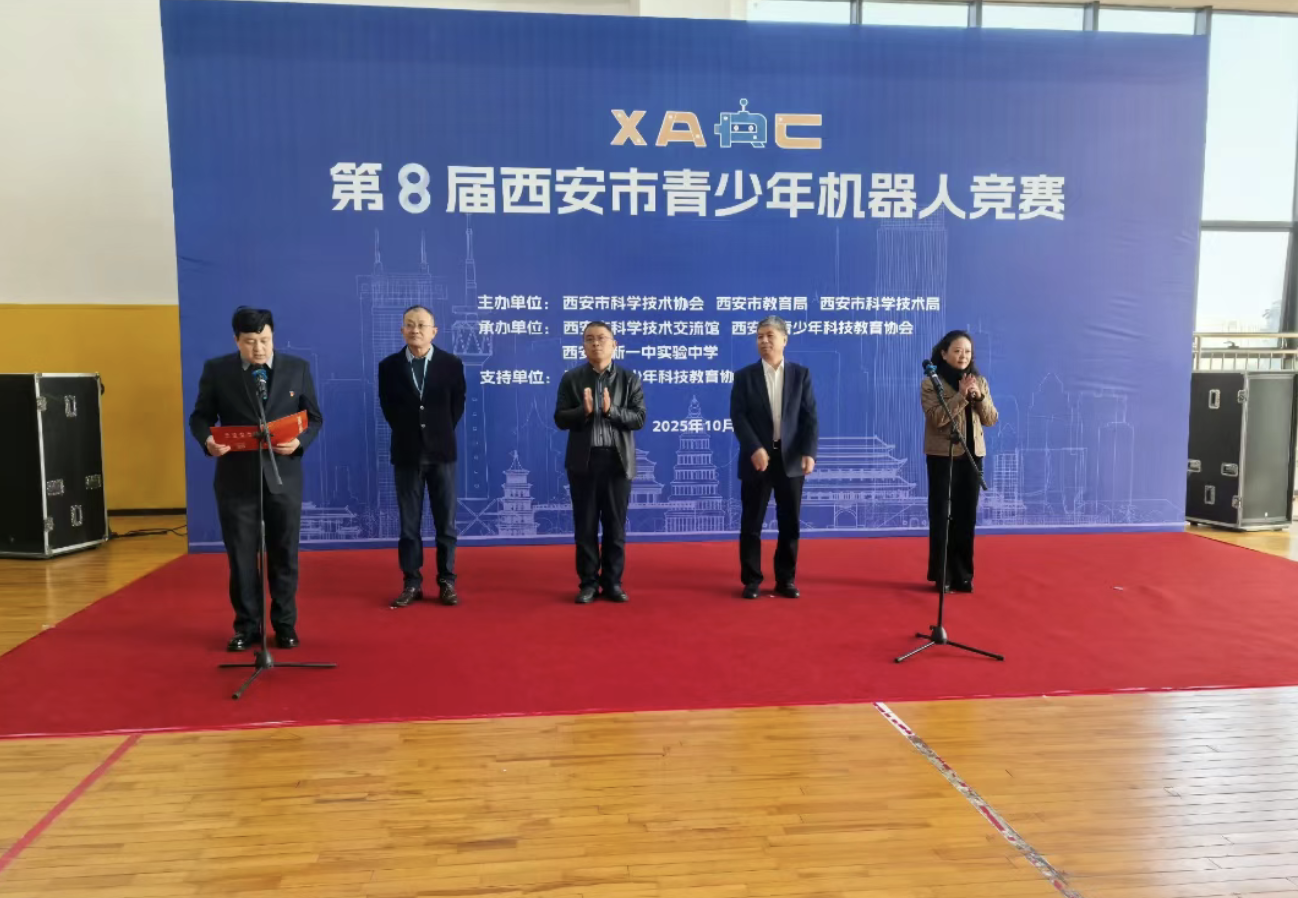 市科技交流馆馆长董江在讲话中指出:青少年是国家科技发展的未来力量,是推动创新浪潮的“后浪”。希望参赛选手以严谨的态度对待每一次操作,展现扎实的科技功底;以开放的心态与同伴交流,在竞争中收获成长、在协作中凝聚智慧;更以开阔的视野突破思维局限,让创意在实践中落地、让梦想在赛场启航。并以此次大赛为起点,始终保持对科技的热爱,未来在人工智能、智能制造等领域勇攀高峰,以西安建设国家科技创新中心、为国家科技发展贡献青春担当。